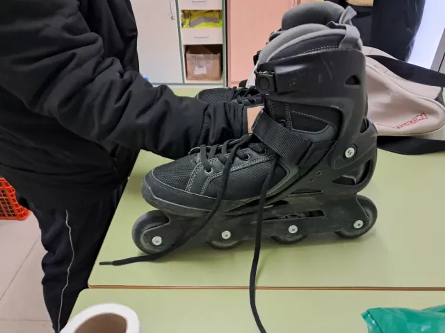 Pattini inline neri per adulti, ideali per iniziare a pattinare. - Chiusura con velcro e lacci. - Ruote in poliuretano.