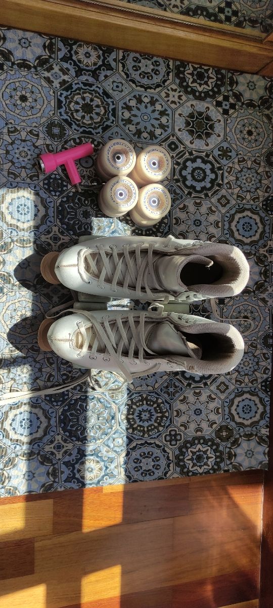 Dettagli del prodottoI pattini professionali Risport 255 sono venduti come il numero 38. I pattini vengono venduti completi di ruote in cemento e ruote in parquet oltre alla chiave. Può essere venduto anche separatamente