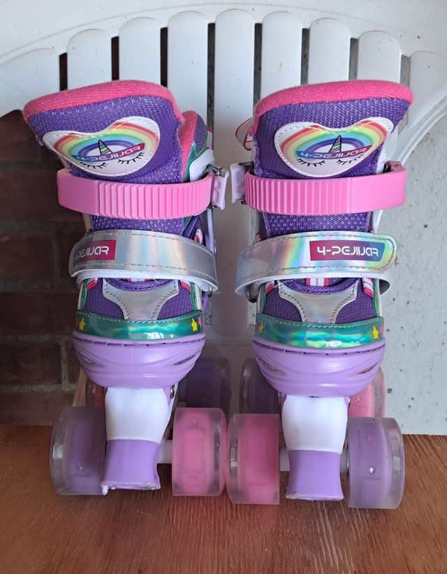 Dettagli del prodottoPattini a rotelle n 26/29 per bambina con un design a unicorno colorato.