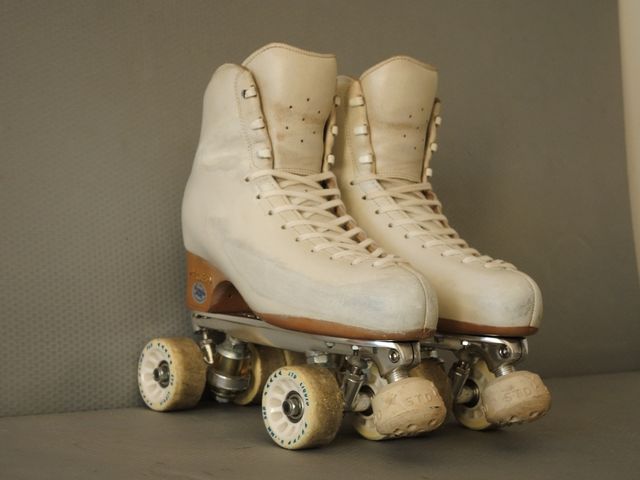 Dettagli del prodottoPattini a rotelle di colore bianco, ideali per pattinaggio.