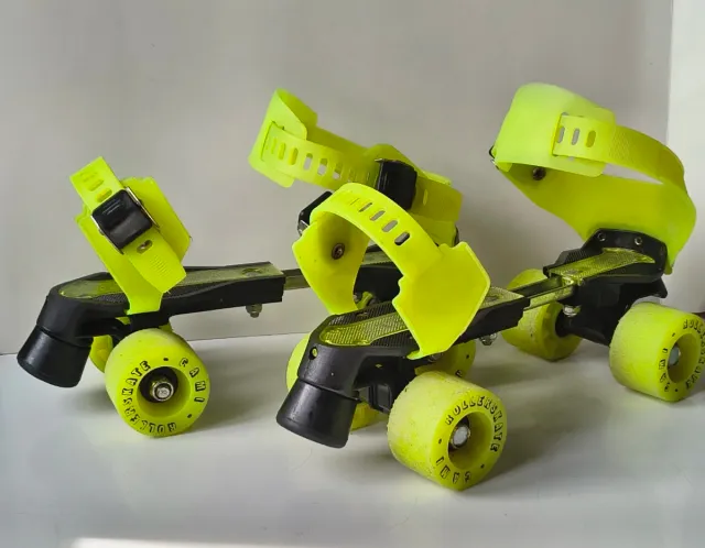 Pattini a rotelle CAMI di colore giallo fluo. Ideali per divertirsi all'aria aperta. - Chiusura con cinturino regolabile. - Ruote resistenti.
