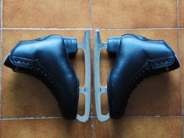 Coppia di pattini da ghiaccio neri. - Marca Graf. - Lame in acciaio.