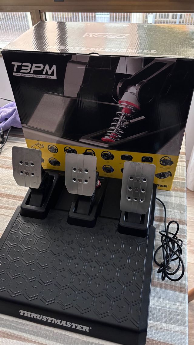 Dettagli del prodottoPedallera Thrustmaster T3PM (3 pedali) in ottime condizioni e perfettamente funzionante. Include acceleratore, freno e frizione, con sensori magnetici H.E.A.R.T. senza contatto per maggiore precisione e durata. Il pedale del freno ha resistenza regolabile con diverse modalità per adattarsi al tuo stile di guida. Compatibile con volanti Thrustmaster come T300, T248, TX, tra gli altri. Ideale per giochi di simulazione come Gran Turismo, Assetto Corsa, F1. ✔ Tecnologia magnetica senza usura ✔ Freno con resistenza regolabile ✔ Base robusta e antiscivolo. Fornito con la scatola originale. La descrizione è stata tradotta automaticamente.