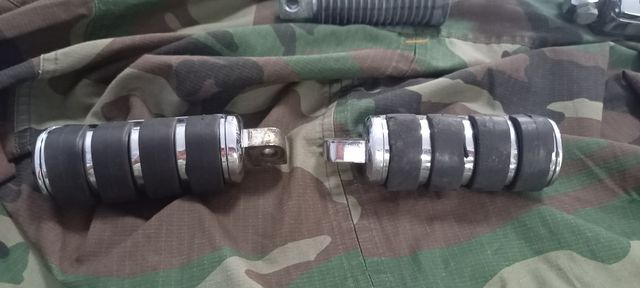 Coppia di pedane cromate per Harley-Davidson. - Design con inserti in gomma nera. - Finitura cromata lucida.