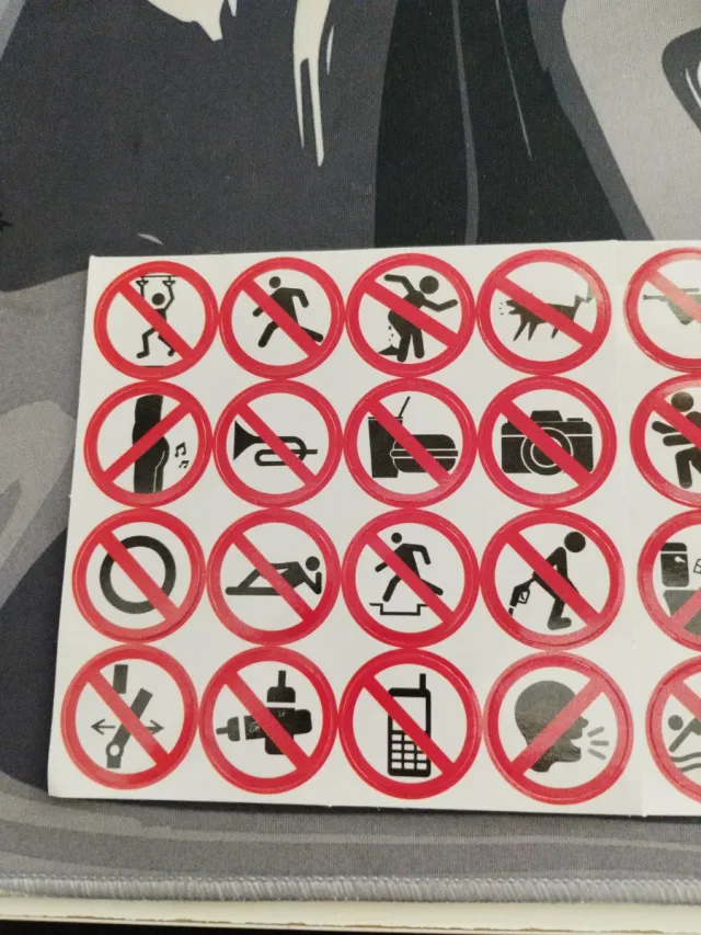 Dettagli del prodottoLotto di adesivi con cartelli di divieto.