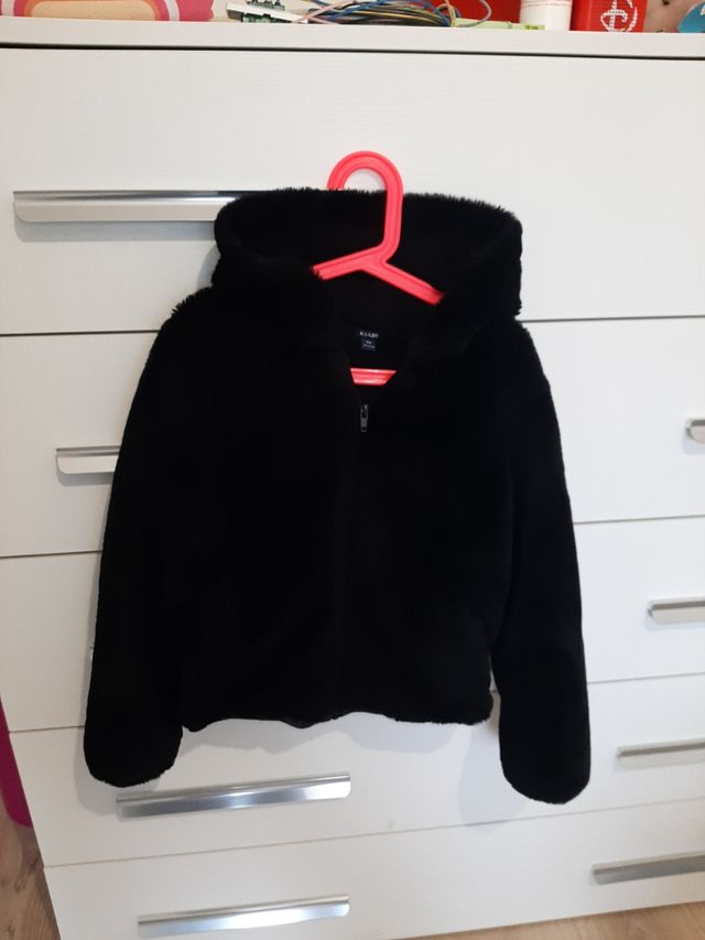 Dettagli del prodottoPelliccetta sintetica colore nero con cappuccio e cerniera. Taglia 10 anni di Kiabi vuol dire 8 anni italiana. Usata ma in ottime condizioni. Perfetta per autunno e promavera.