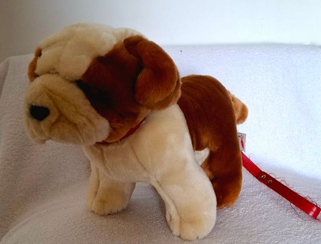 Dettagli del prodottoBellissimo cucciolo di Bulldog Inglese di peluche, vintage.
