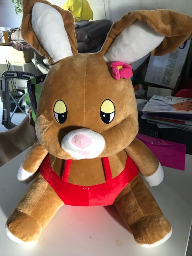 Dettagli del prodottoPeluche di coniglio marrone con dettagli adorabili.