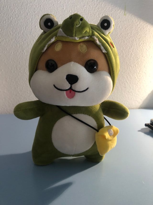 Dettagli del prodottoAdorabile cane di peluche con un divertente costume da rana.