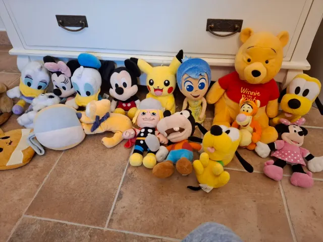 Dettagli del prodottoLotto di peluche di vari personaggi famosi, perfetti per collezionisti o per un regalo.