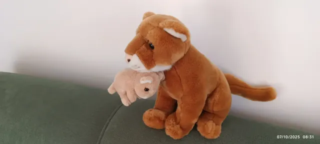 Dettagli del prodottoPeluche di una leonessa che tiene in bocca un cucciolo. Realizzato dal marchio Plush e Compan.ALTEZZA 31 CENTIMETRI