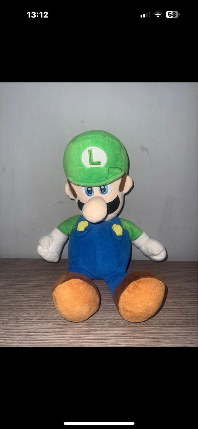 Peluche del personaggio Luigi, fratello di Mario. Perfetto per i fan della serie. - Materiale morbido e soffice. - Dettagli fedeli al personaggio.