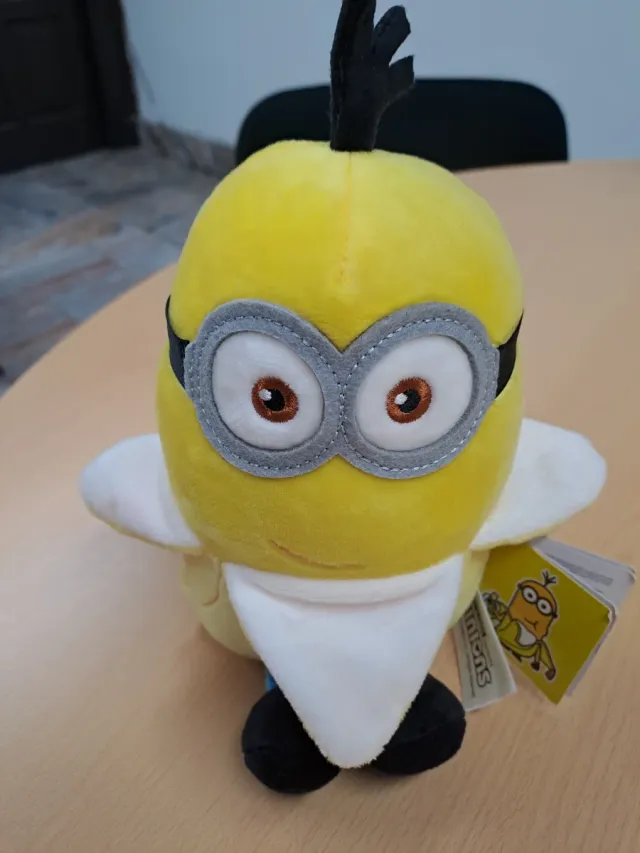 Peluche del personaggio Bob Banana dei Minions di circa 18 cm. Divertente e colorato. Morbido al tatto.