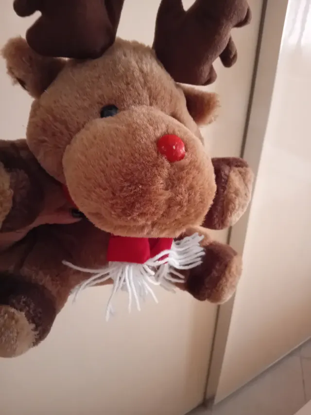 Dettagli del prodottoSimpatico peluche a forma di renna, perfetto per un regalo.