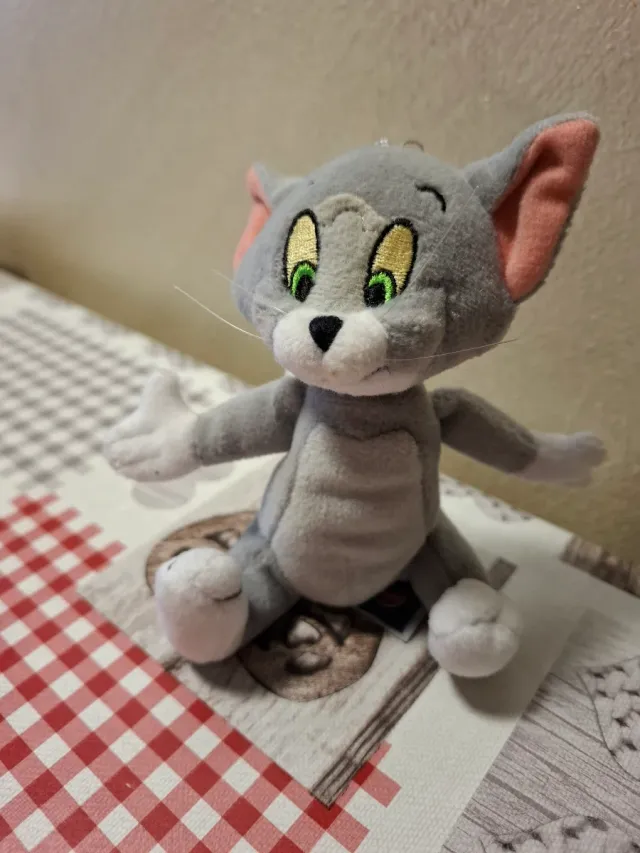 Morbido peluche Trudi a forma di gatto grigio. TOM E JERRY Perfetto per collezionisti o come regalo. - Materiale: peluche morbido. - Colore: grigio con dettagli rosa.
