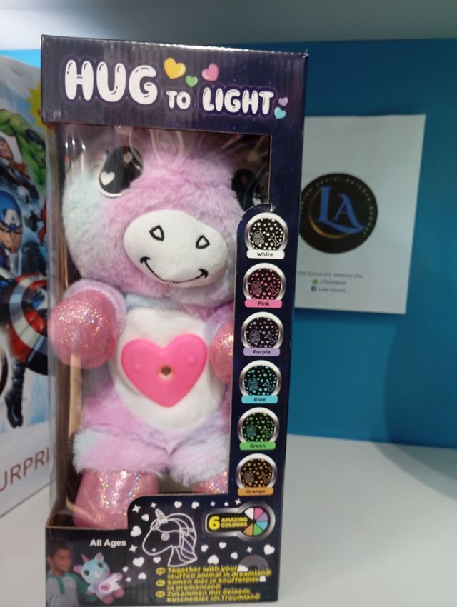 Unicorno proiettore, peluche con suono e luci, 40 cm. Diversi colori e stelle notturne. Nuovo con scatola originale