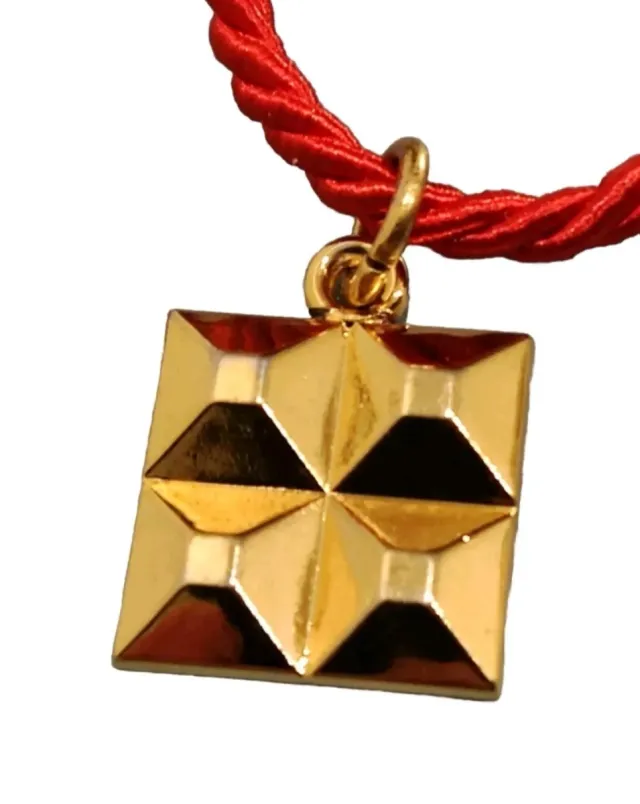 Elegante pendente Givenchy con finitura oro e coordino regolabile rosso.