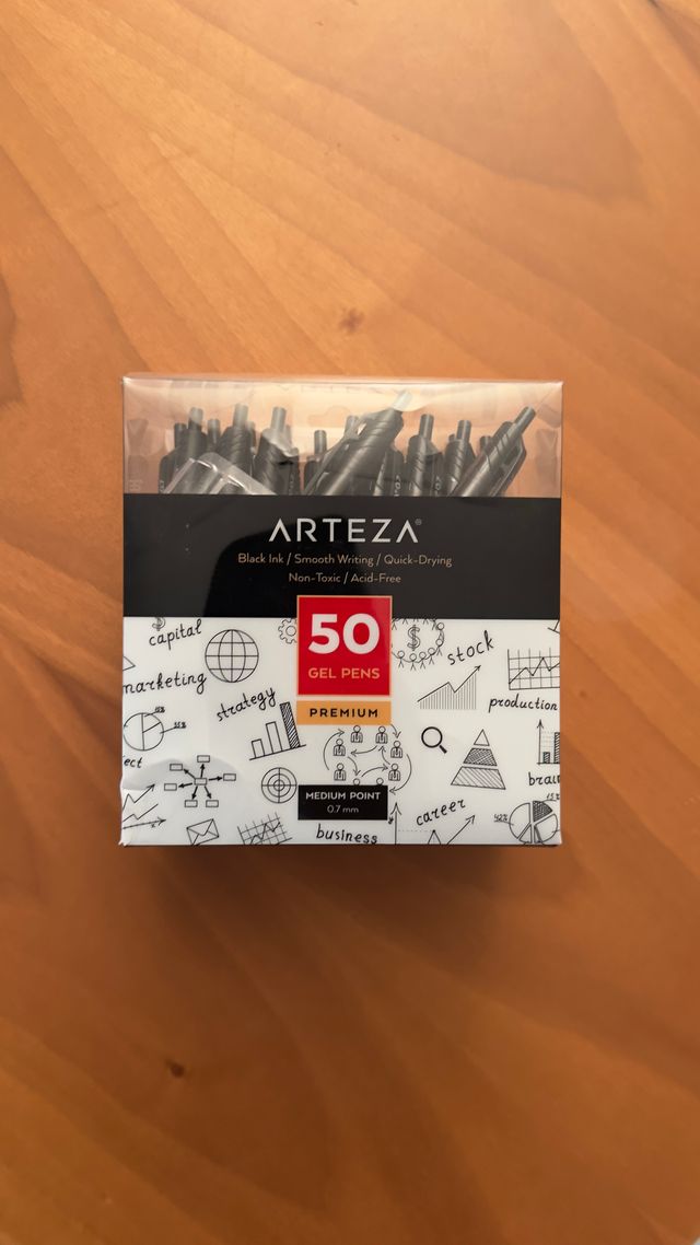 NuovoDettagli del prodottoSet di 50 penne gel nere Arteza con punta media.