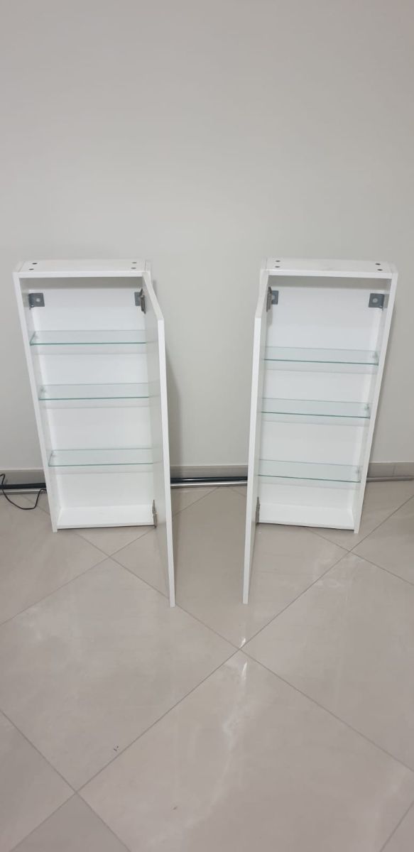 N. 2 pensili gemelli bianco laccato con ripiani in vetro
