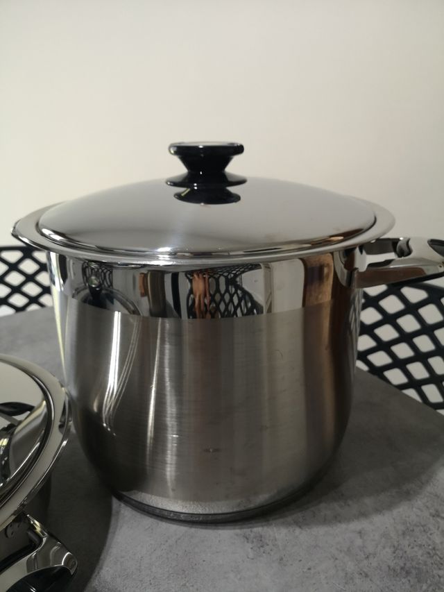 Dettagli del prodottoPentola in acciaio inox 18/10 bavaria made in Italy, capienza all incirca 10 litri, manici acciaio e una parte plastificati, coperchio thermo control, altezza e diametro vedere foto. Misure del prodotto