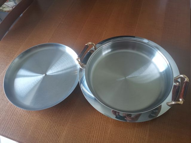 Vassoio da portata (risottiera) in acciaio inox con coperchio, diametro 33 cm, usato pochissimo