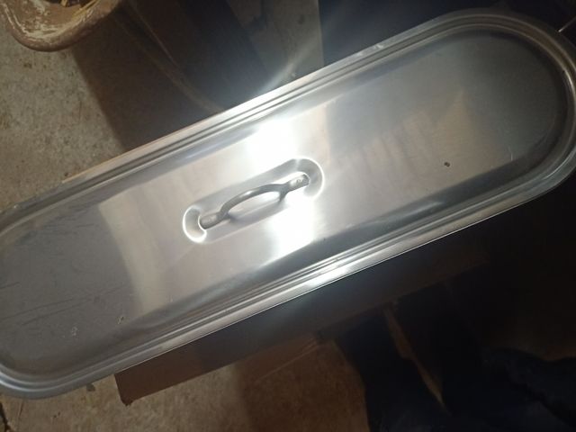 pentola per la cottura di grossi pesci ( anche a vapore, munita di griglia) e arrosti. con coperchio misure approssimative cm 60x 20x20