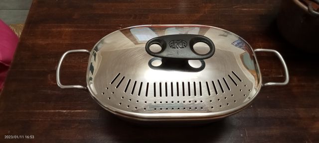 pentola in acciaio inox per spaghetti con coperchio per scolare, o per pesce, usata 2 volte praticamente nuova adatta a tutti i tipi piano cottura