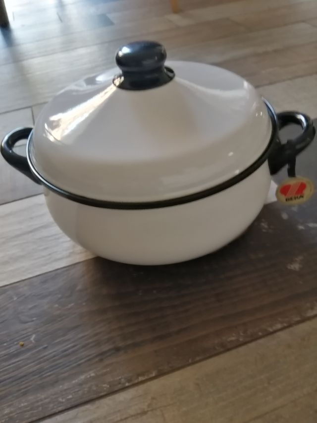 Dettagli del prodottoPentola smaltata della BEKA,con coperchio, marchioTedesco di alta qualità 26cm.si può usare anche su piastra a induzione. NUOVA Misure del prodotto