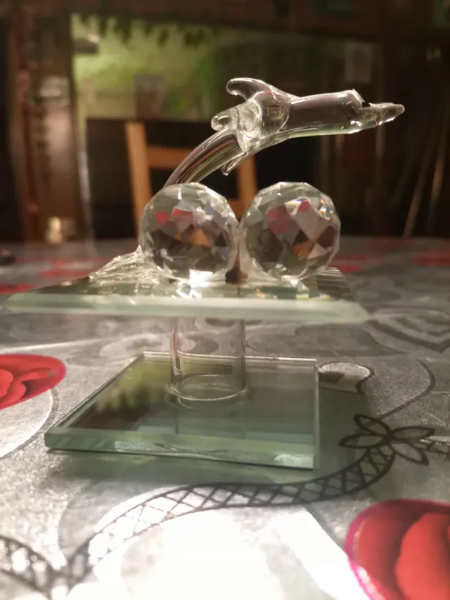 Dettagli del prodottoPreziosa figura di vetro per collezionisti, un delfino saltellante con due sfere, alta 7 cm, larga 7 cm e profonda 7 cm. Montata su uno specchio. È completamente nuova per chiusura di negozio. Design delicato con un delfino e due sfere. Base quadrata in vetro e specchio. La descrizione è stata tradotta automaticamente.