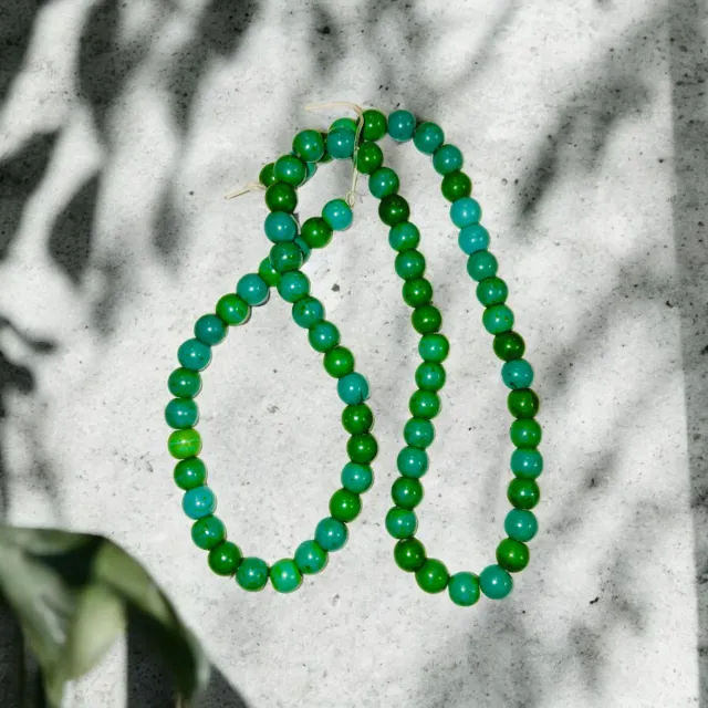 Dettagli del prodottoSet di perline in varie tonalità di verde e turchese, perfette per progetti creativi.