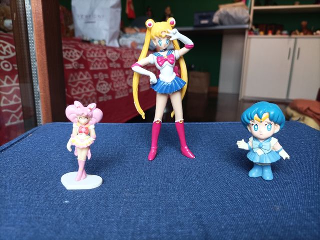 tre personaggi: Sailor Moon 10cm, Sailor Mercury 4cm, Kibiusa 4cm. condizioni ottime. non vendibili separatamente.