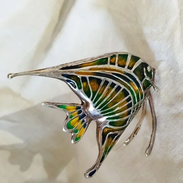 Bellissimo pesce in argento "925" Internamente vetro o smalto multicolor altezza 10 cm larghezza 8/5 cm