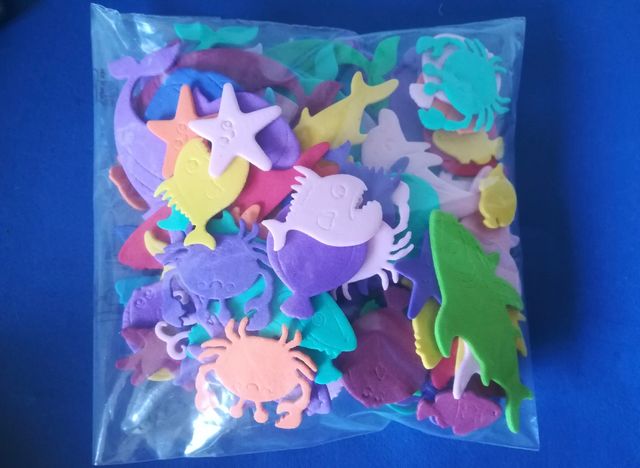 Dettagli del prodottoSacchetto di simpatici pesciolini colorati in gomma eva, perfetti per attività creative o decorazioni. Sono morbidi e piacevoli al tatto.