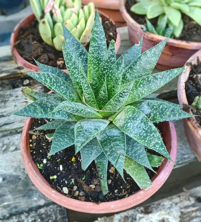 Pianta di Grauderia Sigma in vaso ciotola 14. Pianta grassa rara - Foglie verdi con macchie bianche. - Adatta per interni o esterni.