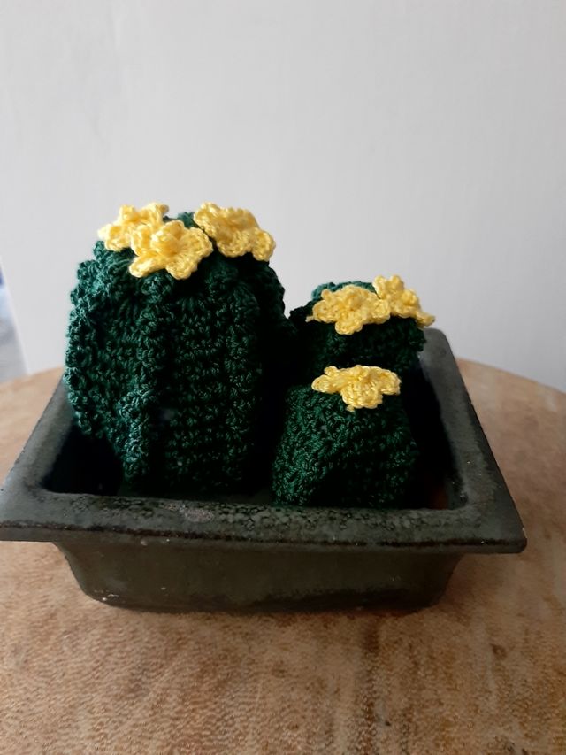 Pianta grassa lavorata a uncinetto in vasetto di ceramica misure cm. 12 x 9