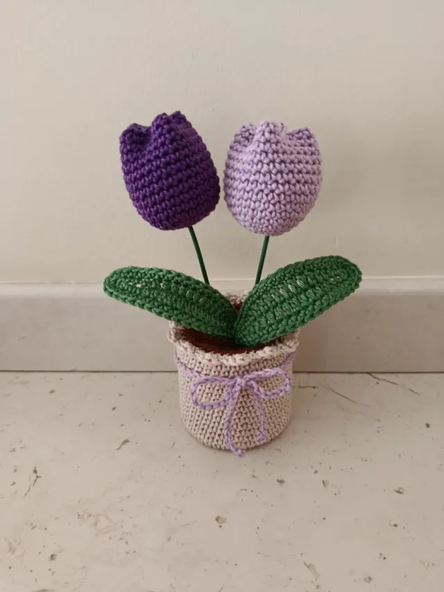Dettagli del prodottoDeliziosa piantina realizzata all'uncinetto, perfetta per aggiungere un tocco di colore e artigianalità alla tua casa.