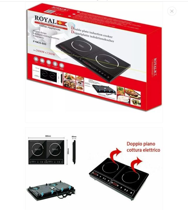 Dettagli del prodottoDoppia piastra a induzione marca Royal.
