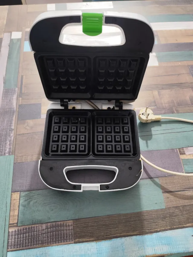 Piastra per waffle con piastre antiaderenti. - Design compatto. - Manico termoisolato. - Spia luminosa di funzionamento.