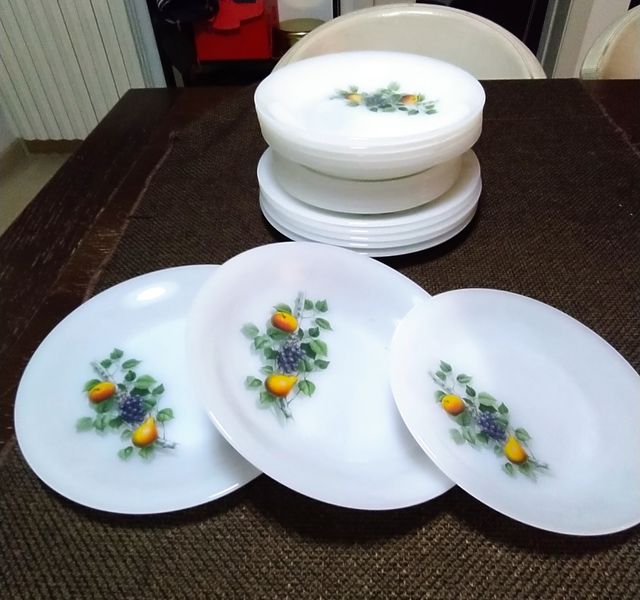 servizio piatti Arcopal bianco con decoro frutta 6piani 6fondi 6frutta