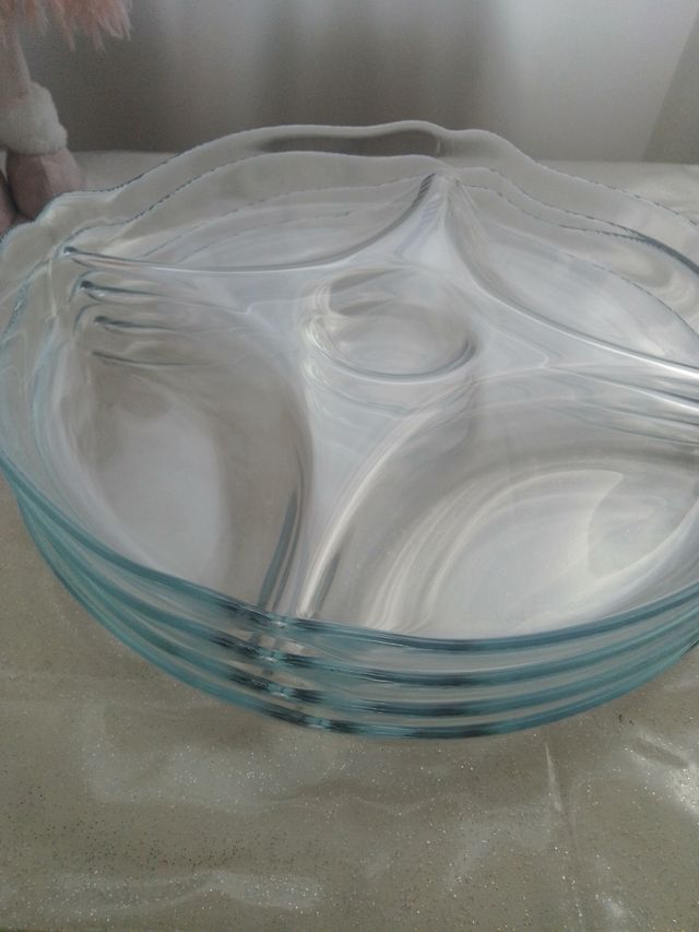 Dettagli del prodottoSet da 4 piatti per antipasto nuovi, con divisorio per quattro portate e centro porta bicchiere. Affare. Senza scatolo originale. Misure del prodotto