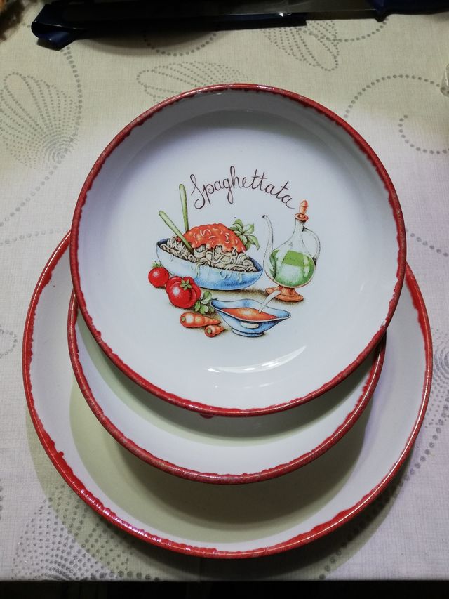 N°6 piatti pasta/spaghetti più N°1 piatto da portata/spaghettiera. Vintage, nuovi mai usati