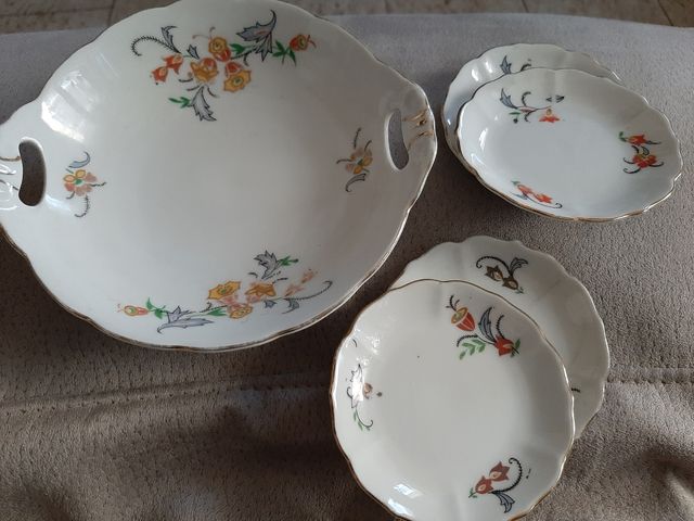 piattini per burro da tavola e individuali bianchi con bordo oro e fiorellini per prima colazione misura 16cm / 8cm anni 50 Germania