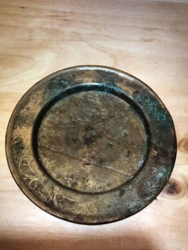 piccolo piattino in ottone (da pulire). decoro sul bordo