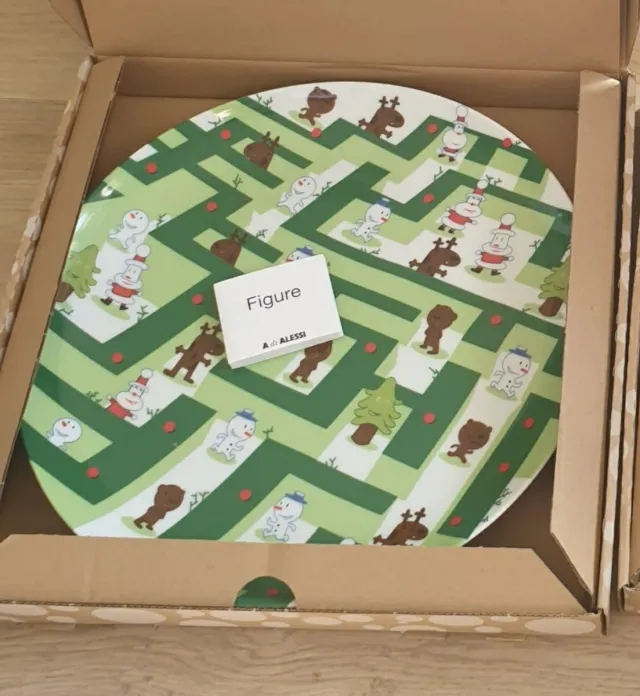 Dettagli del prodottoPiatto rotondo Alessi con un allegro disegno a labirinto. Perfetto per aggiungere un tocco di originalità alla tavola.