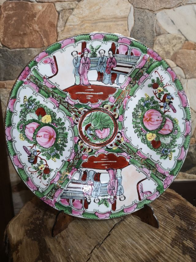 Dettagli del prodottoPiatto da esposizione, diametro cm 26,no cineseria ma acquistato in un negozio di arredamento orientale. In perfette condizioni. Misure del prodotto