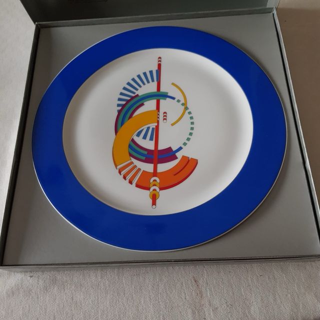 Marcello Morandini design per Rosenthal Studio-linie Germany. Bianco bordo blu chiaro. Idea personalizzata per regalo originale come segnaposto o come piatto da appendere
