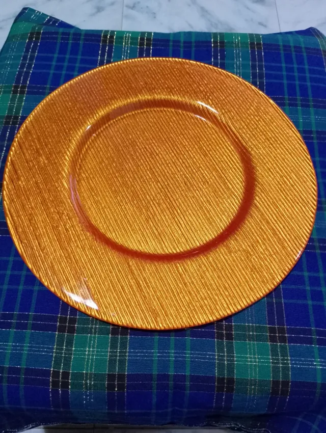 Elegante piatto decorativo di colore arancione con una finitura a righe. - Materiale: Vetro - Colore: Arancione - Design: Rigato
