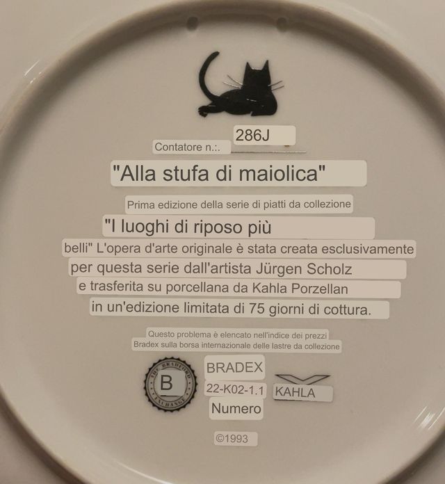 Dettagli del prodottoPiatto decorativo in porcellana con gattini, artista Jürgen Sholz. In perfette condizioni. Vendo a prezzo basso perché purtroppo non trovo più la scatola originale.