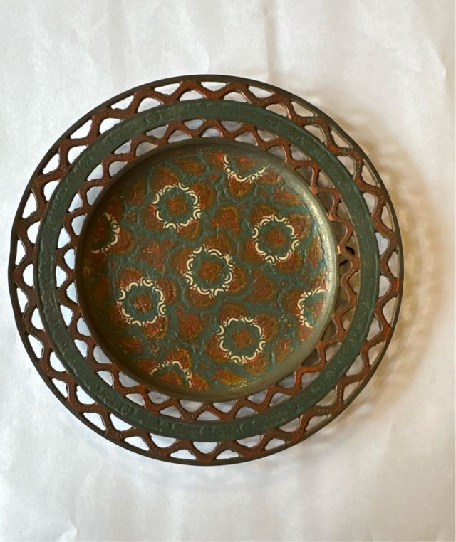 Piatto decorativo vintage in metallo traforato