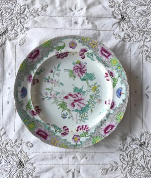 Dettagli del prodottoMeraviglioso piatto in ceramica fine antica inglese della manifattura di Hicks & Meigh, attiva nello Staffordshire in epoca Georgiana, fra 1807 e 1822. È presente il loro marchio con Coat of Arms e la dicitura Stone China su retro.
